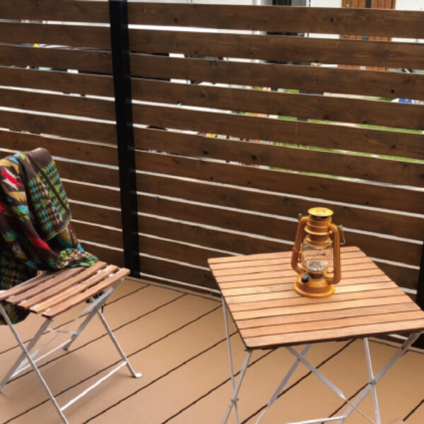 高さを変えた天井とウッドデッキで開放感のあるリビング