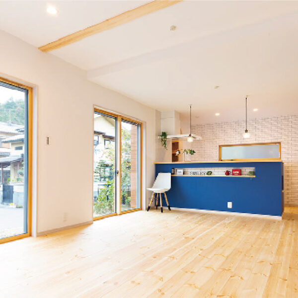 無垢フロアと自然素材の光と家族が集まるやさしい家